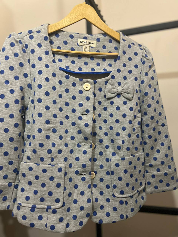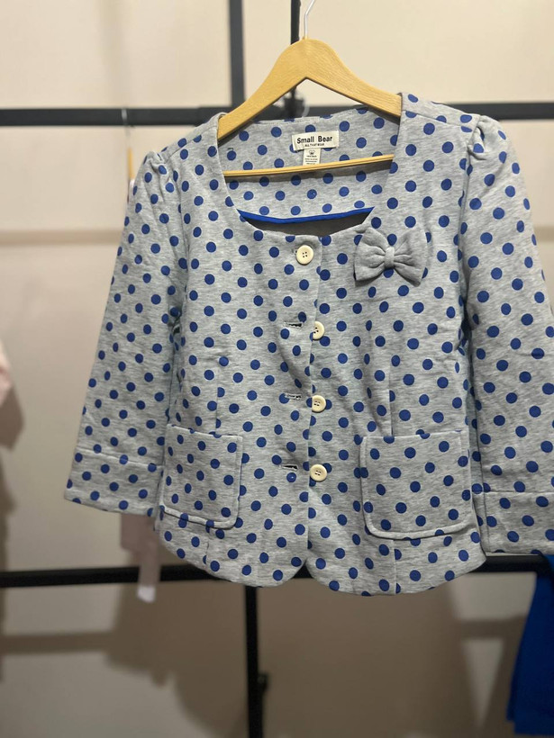 کت/ژاکت دخترانه جنس ویسکوز وارداتی آستین بلند خال خالی پاپیون دار