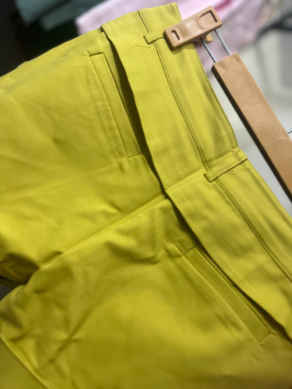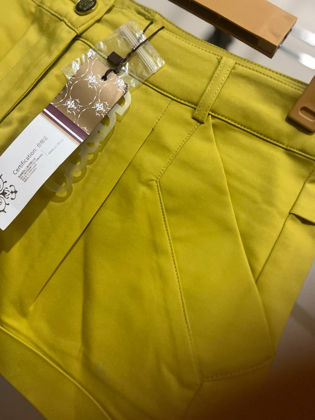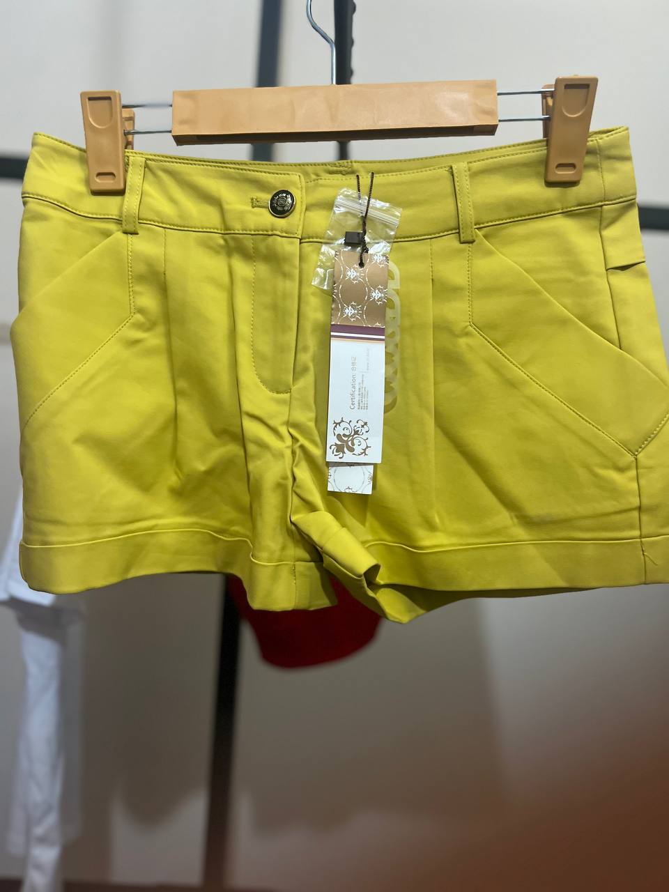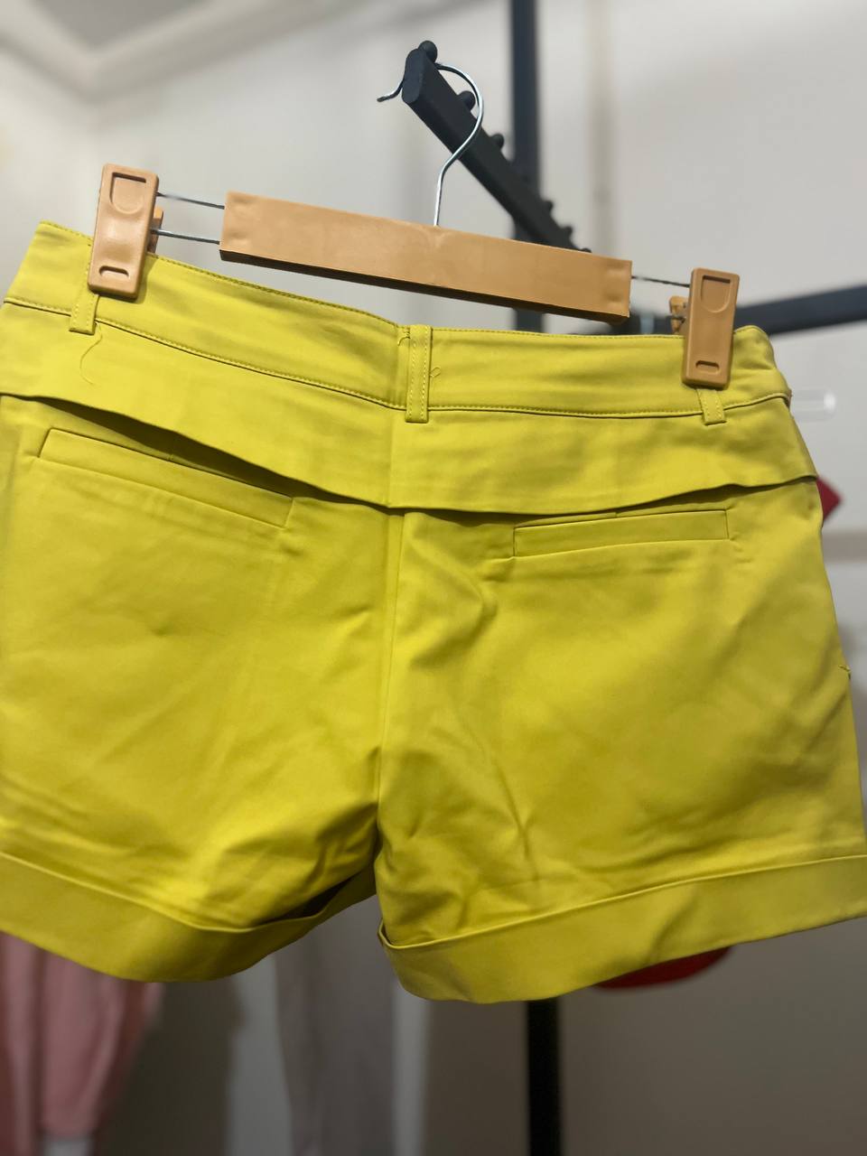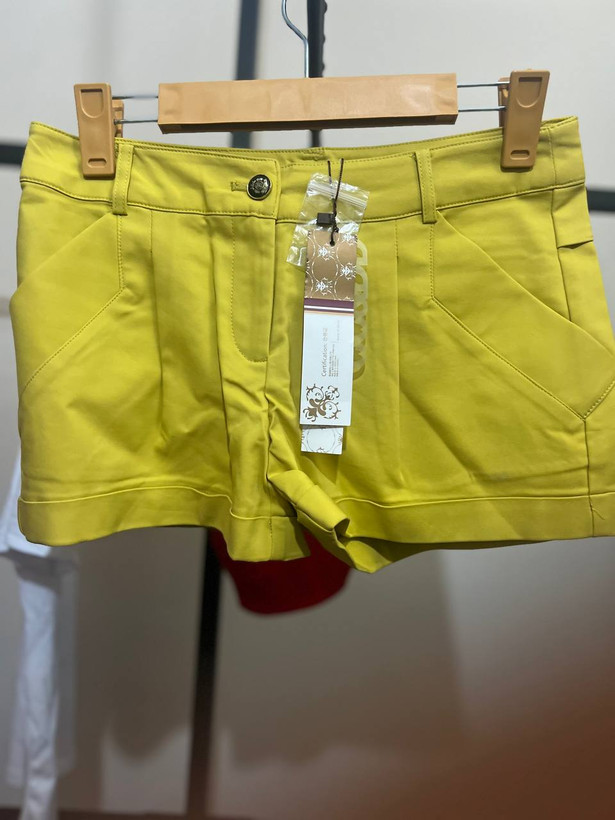 شلوارک دخترانه کتان رنگ سبز لیمویی پیلی دار با پل کمربند