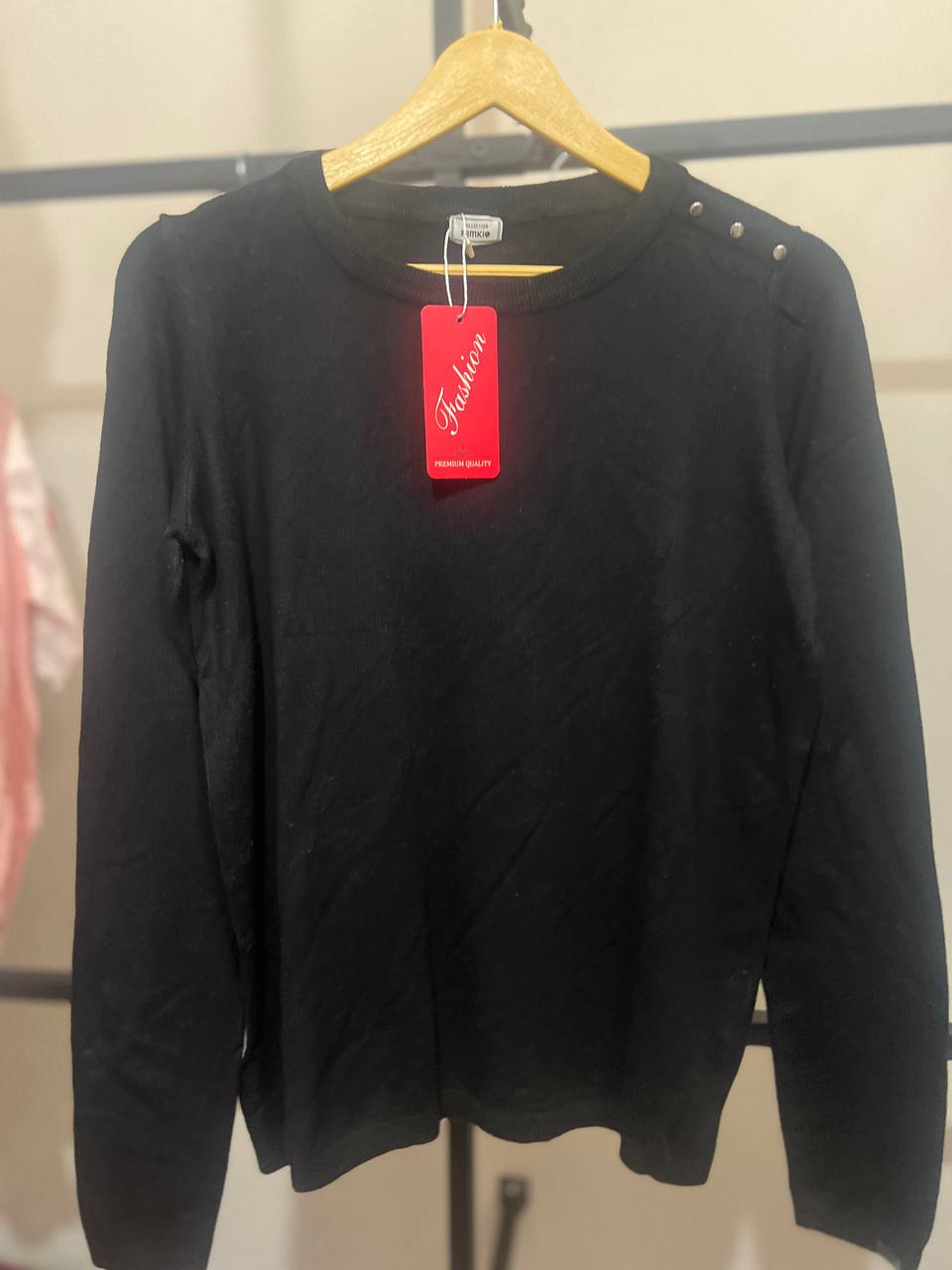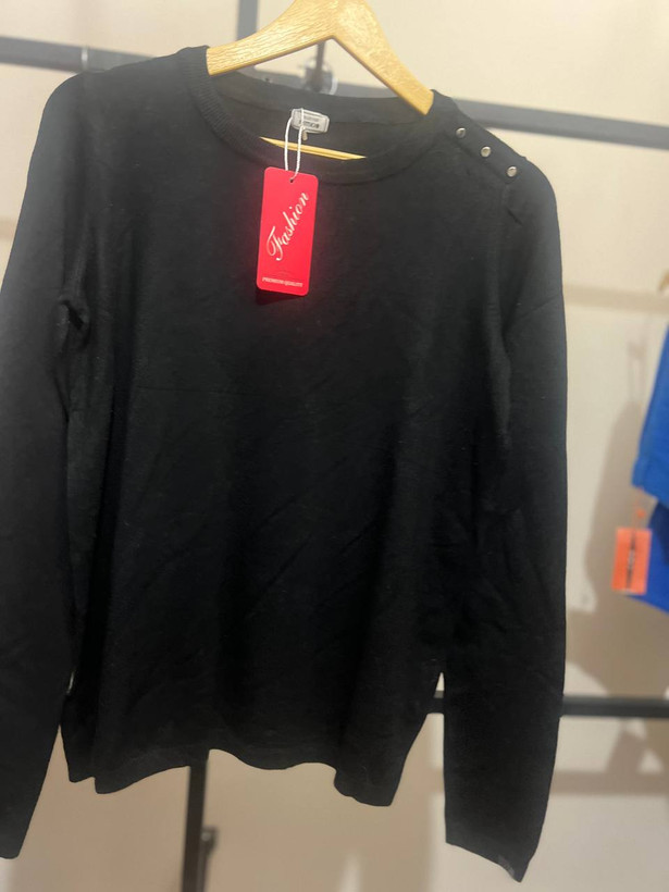 پلیورزنانه مشکی یقه گرد ساده آستین بلند