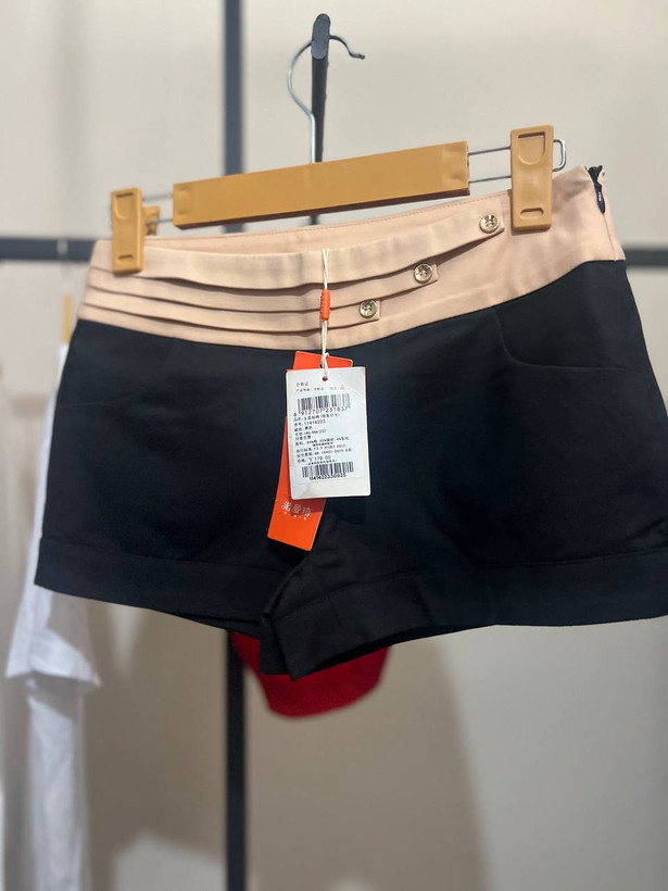 شلوارک زنانه دو رنگ مشکی کرم کوتاه کرپ