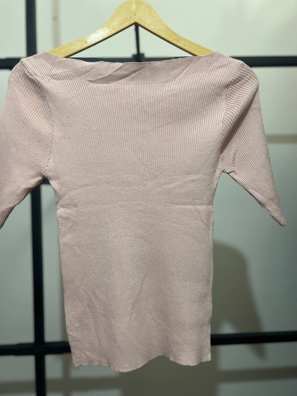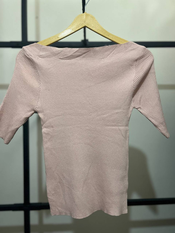 بلوز بافت زنانه یقه قایقی آستین کوتاه رنگ کرم